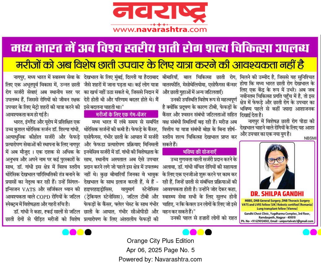 Dr. Shilpa Gandhi | Leading Consultant Minimally Invasive Thoracic Surgeon In Nagpur